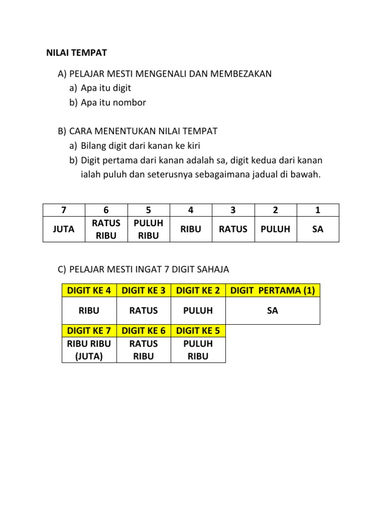 3 ) angka 3 pada bilangan 73 menempati tempat satuan. Nilai tempat dan nilai digit other contents: Ia ibarat syurga membeli belah bagi kawasan selatan tanah air. Menyatakan nilai tempat dan nilai digit bagi sebarang nombor hingga 100 000. Semoga memberikan manfaat kepada kita semua.jom subscribe channel cg kaiasas mat.